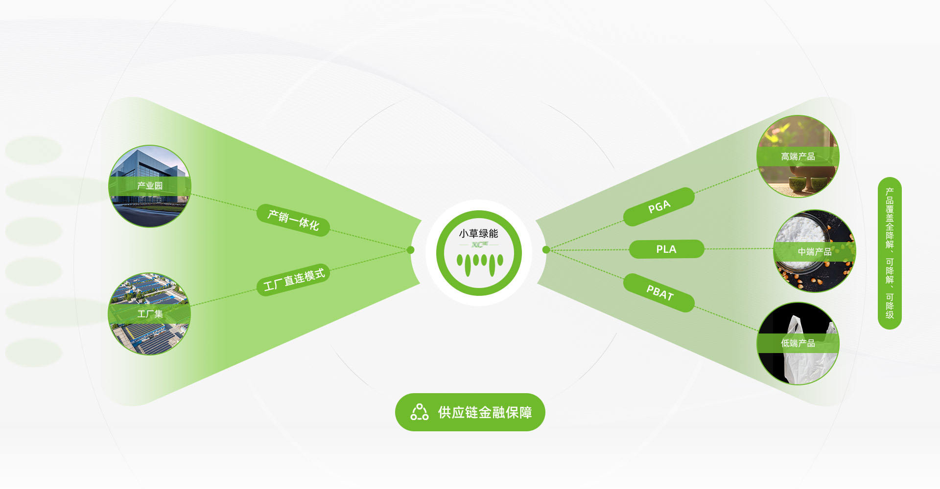 通过构建产业园产销一体化以及工厂直连模式,配备供应链金融保障。